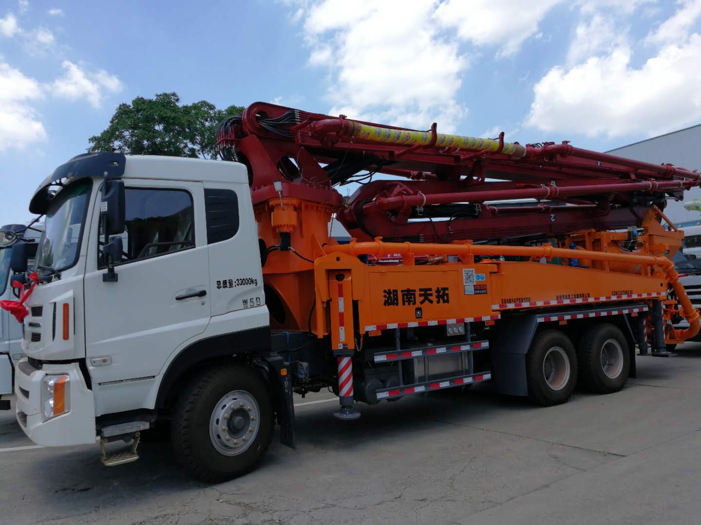 攪拌天泵、泵車帶攪拌一體機臂架長度劃分就有很多,就拿天拓重工的攪拌泵車分28米、30米、33米、35米、38米等臂架長度;所以在咨詢價格之前,你要看您的工程及主要施工工地,多長的臂架可以適合您,不買貴的只買對的才是最好的。